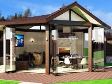 Bei der Auswahl der einen oder anderen Option müssen wir berücksichtigen, dass der Bau eines geschlossenen Pavillon mehr kostet als ein offener. Der Verbrauch von Baumaterial wird hier viel höher sein, ebenso die Arbeitskosten für den Bau selbst.