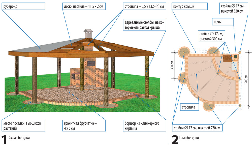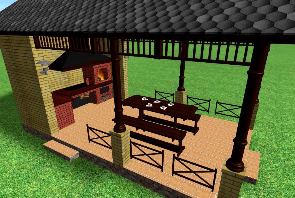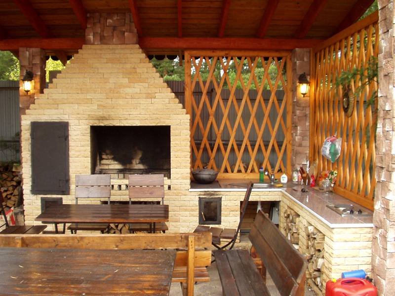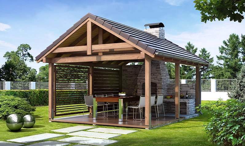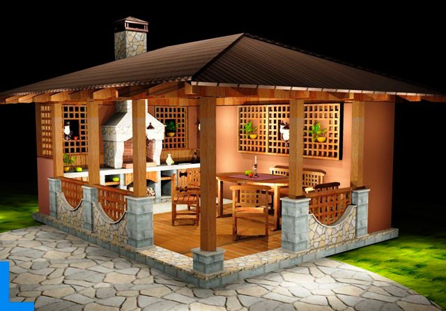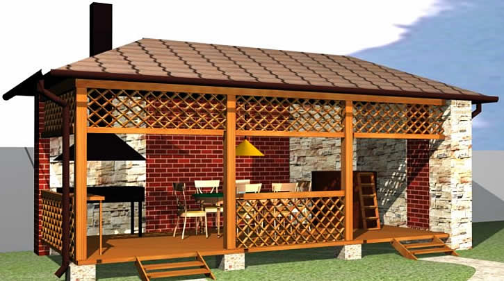 Der Bau von Pavillons mit Grill, Barbecue und anderen Arten von Öfen sieht in etwa gleich aus.