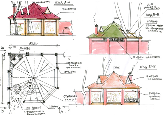 Projekte für den Bau von jeder Art von Gazebos mit einem Ofen müssen viele Komponenten berücksichtigen: