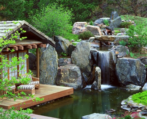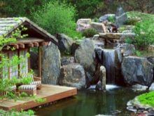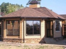 Außerdem kann in der Konstruktion Steinimitat verwendet werden.Zum Beispiel kann ein gerissener Stein auf der Plattform am Eingang zum Pavillon sein. Sie können sie und interne Oberflächen, zum Beispiel einen Kaminbereich, anordnen.