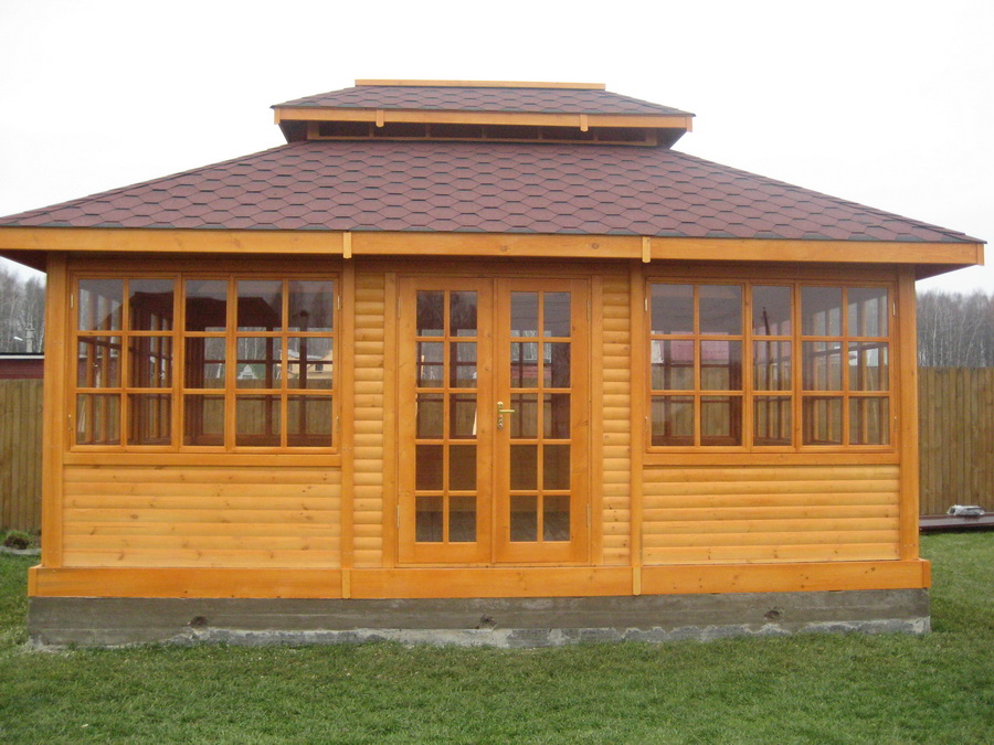 Eine Besonderheit des geschlossenen Pavillon ist das Vorhandensein von Wänden und Fenstern. In der Tat ist dies ein kleines Haus mit verglasten Fenstern, in denen Sie bei Bedarf Gäste organisieren können. Im Gegensatz zu Strukturen vom offenen Typ ist dieses Gebäude solider, es erfordert einen besonderen Ansatz für die Erstellung des Fundaments und die Veröffentlichung von Mitteilungen. Es wird aus verschiedenen Rohstoffen hergestellt, wobei das Gesamtkonzept, die finanziellen Möglichkeiten des Kunden, die Destination und die klimatischen Bedingungen der Region berücksichtigt werden.