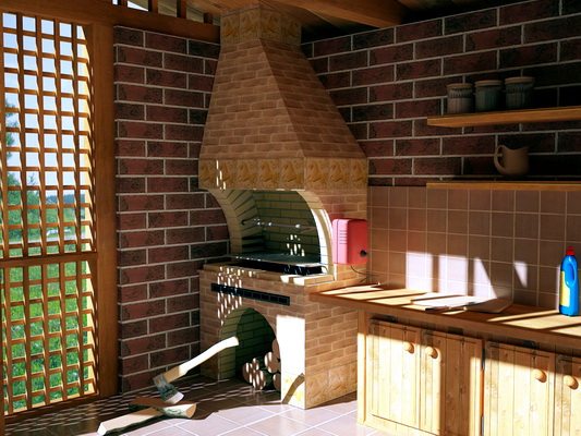 Ziegel kann nicht nur für die Wände verwendet werden: es ist ein guter Rohstoff für den Ofen und Grill.