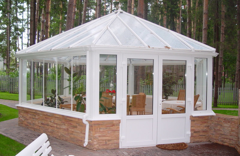 Geschlossene Pavillons für Datscha unterscheiden sich in der Masse der Vorteile im Vergleich mit Analogen des offenen und halbgeschlossenen Typs.Sie sind funktioneller, da ihr Betrieb nicht von den Jahreszeiten und Wetterfaktoren abhängt. Sie sind gut vor kaltem, böigem Wind geschützt und schützen im Sommer vor Insekten, die in der Regel sehr zahlreich sind. Viele Projekte zeichnen sich durch das Vorhandensein von Wasser aus, was das Abwaschen von Geschirr und halbfertigen Produkten zum Kochen vereinfacht.