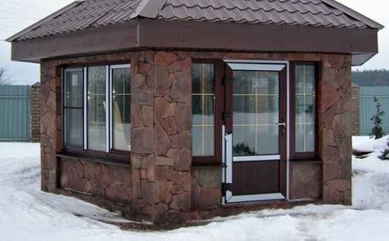 Die geschlossene Laube kann die andere Form haben. Meistens ist es ein Gebäude in Form eines Rechtecks, Quadrats, Sechsecks und Achtecks. Weniger häufig ähnelt die Form des Gebäudes einem halben Oktagon oder einem Polygon mit einem kleinen Rechteck.