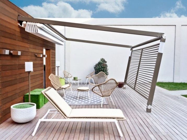 Wenn Sie eine Überdachung zu einer Plattform hinzufügen, wird es von der sengenden Sonne während einer Hitze bedeckt und wird der beste Ort für Tee trinken oder andere Mahlzeit an der frischen Luft sein. Dadurch entfällt die Notwendigkeit, Möbel im Schatten des Gartens unter Baumkronen zu verlegen.