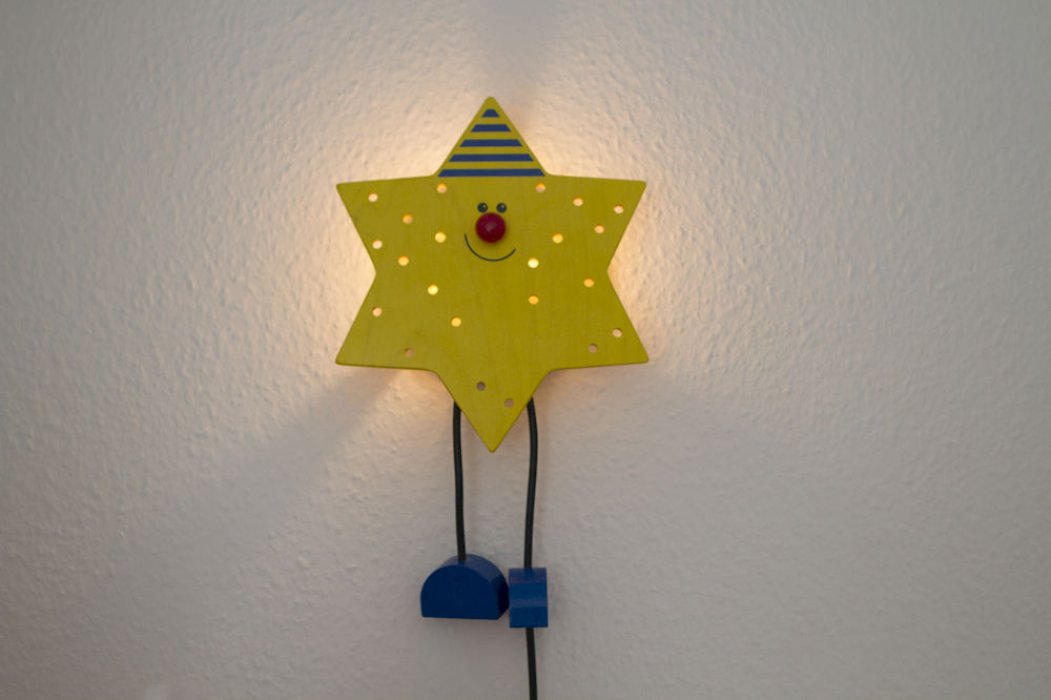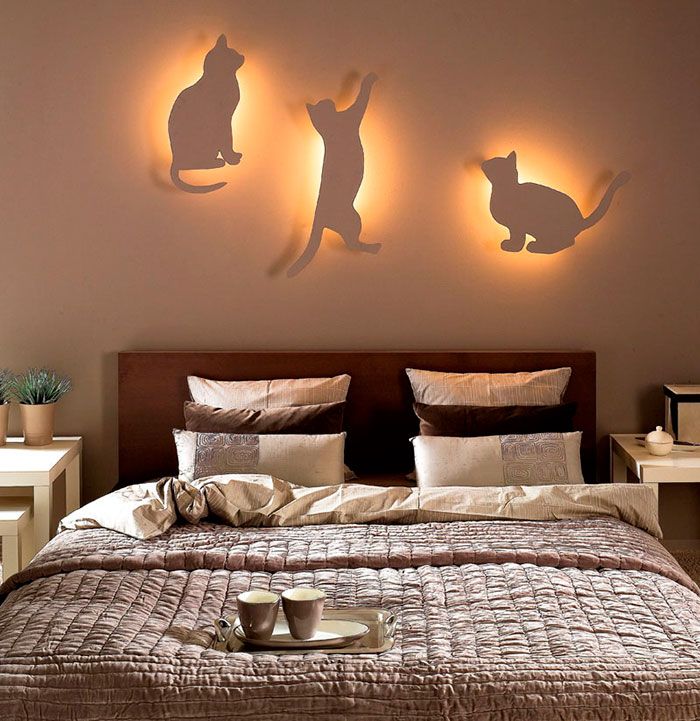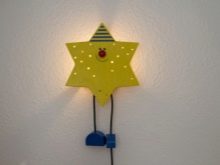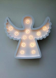 - Für das Kinderzimmer Sie können sich etwas Besonderes einfallen lassen - zum Beispiel ein an der Wand befestigtes Nachtlicht, das die Strahlen durch lockige Öffnungen lässt und wunderschöne Muster an den Wänden erzeugt, oder eine Lampe in Form einer interessanten Tier- oder Zeichentrickfigur. Selbst ein unbemalter Baum wird immer noch schön und ungewöhnlich aussehen.