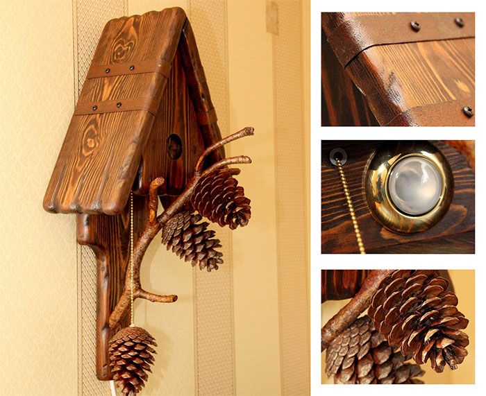 Das wichtigste Plus der Lampe aus einem natürlichen Baum besteht in der Umweltfreundlichkeit dieses Materials. Wenn der Baum minimal bearbeitet wird, ist dies völlig ungefährlich für Ihre Gesundheit. Das bedeutet, dass Sie eine solche Lampe auch im Kinderzimmer sicher an der Wand befestigen können. Der Baum ist auch gut, weil Es sättigt die Luft mit Harzen, die das Atmen erleichtern.