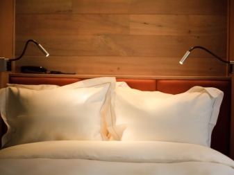 Wandleuchter auf einem flexiblen Bein können auch ein separates Produkt sein. Solche Modelle sind aus Metall, biegsame Beine erlauben es, das Licht an den richtigen Ort zu lenken. Leuchter ist an der Wand befestigt - neben dem Bett.