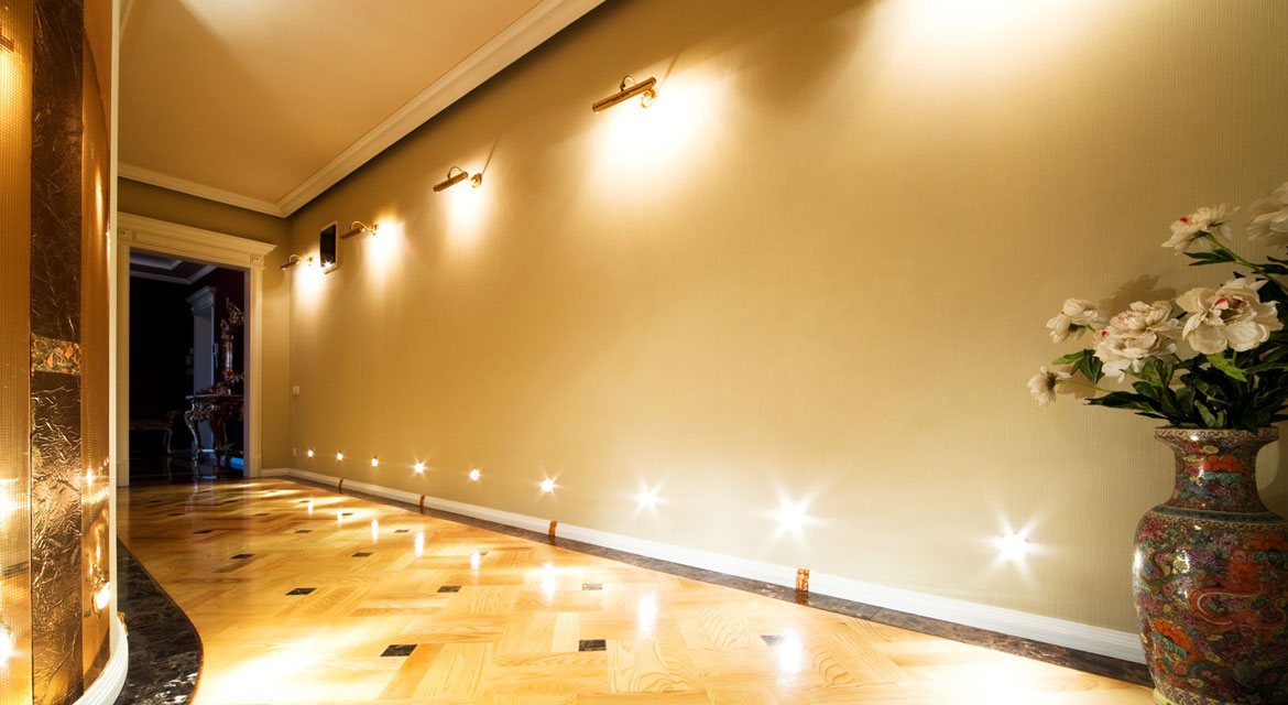 - Der Korridor. Im langen Korridor wäre eine gute Option die Anordnung von Wandleuchten entlang der Wand. Dies wird den Raum erheblich "beleben".