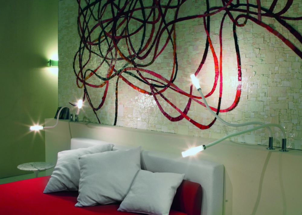 - Viele Hersteller konzentrieren sich auf die Produktion von Wandleuchten in modernen Stilen. Moderne Wandlampen Beziehen sich oft auf den High-Tech-Stil. Dies ist eine neue Art von Wandleuchte. Das flexible Horn ist mit einem LED-Modul ausgestattet.