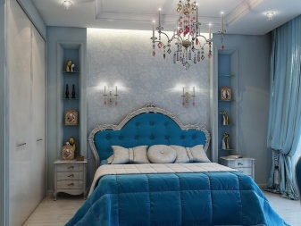 Dank der richtig gewählten Beleuchtung im Raum entsteht eine intime und geheimnisvolle Atmosphäre, die mit Hilfe von Stehlampen und Tischlampen erreicht werden kann. Sie liefern ein gedämpftes diffuses Licht.Nachttischlampen sollten sich auch nicht vom allgemeinen Stil abheben.