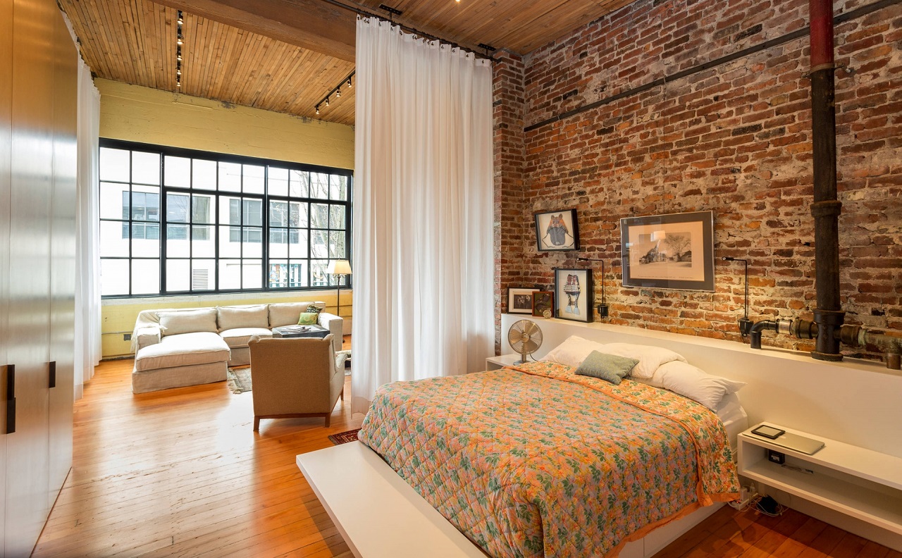 Mit all seiner Unhöflichkeit und Semi-Minimalismus wird das Schlafzimmer im Loft-Stil auf seine Weise gemütlich und attraktiv sein.