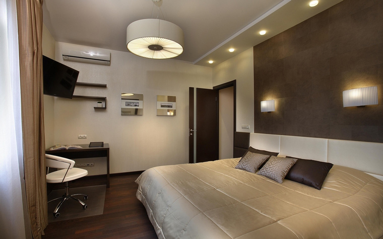 Meistens hängen Wandleuchter an den Wänden im Schlafzimmer. In diesem Raum helfen sie, ein weiches, gedämpftes Licht zu erzeugen, das so notwendig ist, um sich schnell zu entspannen und einzuschlafen. In der Regel wird die Wandleuchte neben dem Bett oder Waschtisch installiert. Die Nähe der Wandleuchte zum Bett hilft, die Beleuchtung zu regulieren, ohne vom Bett aufzustehen.
