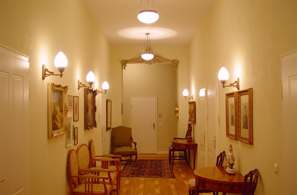 In einem Raum mit niedrigen Decken werden die Wandleuchter mit Licht nach oben auf den gesamten Umfang des Raumes gestellt. Dies erhöht optisch die Decke. Im Wohnzimmer, wo die Decke zu hoch ist, sind die Wandleuchter näher am Boden platziert. So wird die Atmosphäre im Raum romantischer und gemütlicher. Wenn Sie Wandleuchten symmetrisch um einen Spiegel oder ein Bild installieren, werden diese effektiv ohne unnötige Blendung betont.