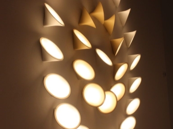Wenn Sie mehrstufige Wandlampen verwenden, können Sie eine einzigartige und dreidimensionale Komposition erstellen. Solche Modelle schaffen ein Gefühl von mehrdimensionalem Raum. Diese Technik wird das Interieur bis zur Unkenntlichkeit verändern.