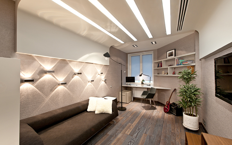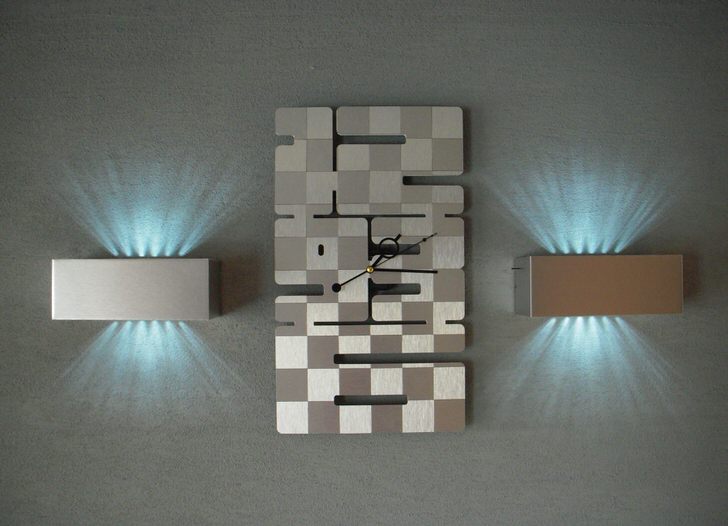 Das am häufigsten verwendete Layout ist um das Bett, wenn es um das Schlafzimmer geht, oder neben dem Schrank, Tisch und anderen Möbeln in anderen Wohnzimmern. Wandleuchten im Stil der Hochtechnologie können nach einem strengen Schema aufgestellt oder ohne Rücksicht auf Möbelstücke und verschiedene dekorative Details platziert werden. Spezialisten aus dem Bereich Interior Design können daraus ein einzigartiges Kunstobjekt schaffen, das die Aufmerksamkeit aller Besucher auf sich ziehen wird.