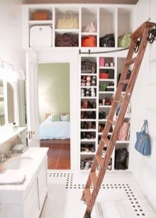- Tragbar. Dies sind in der Regel temporäre Leitern. Viele Besitzer von Privathäusern, die nicht oft auf den Dachboden klettern müssen, haben sogar eine spezielle versteckte Nische für die Leiter erfunden. Um beim Klettern nicht weit in den Schrank zu rennen, ist es immer griffbereit, man muss nur in einen falschen Schrank neben dem Loch in der Decke schauen. Tragbare Bodentreppen sind von zwei Arten: Hilfs- und Trittleitern. Jedoch haben weder die erste noch die zweite ausreichende Sicherheit.