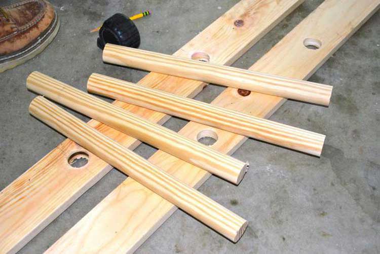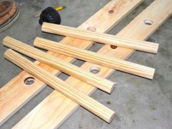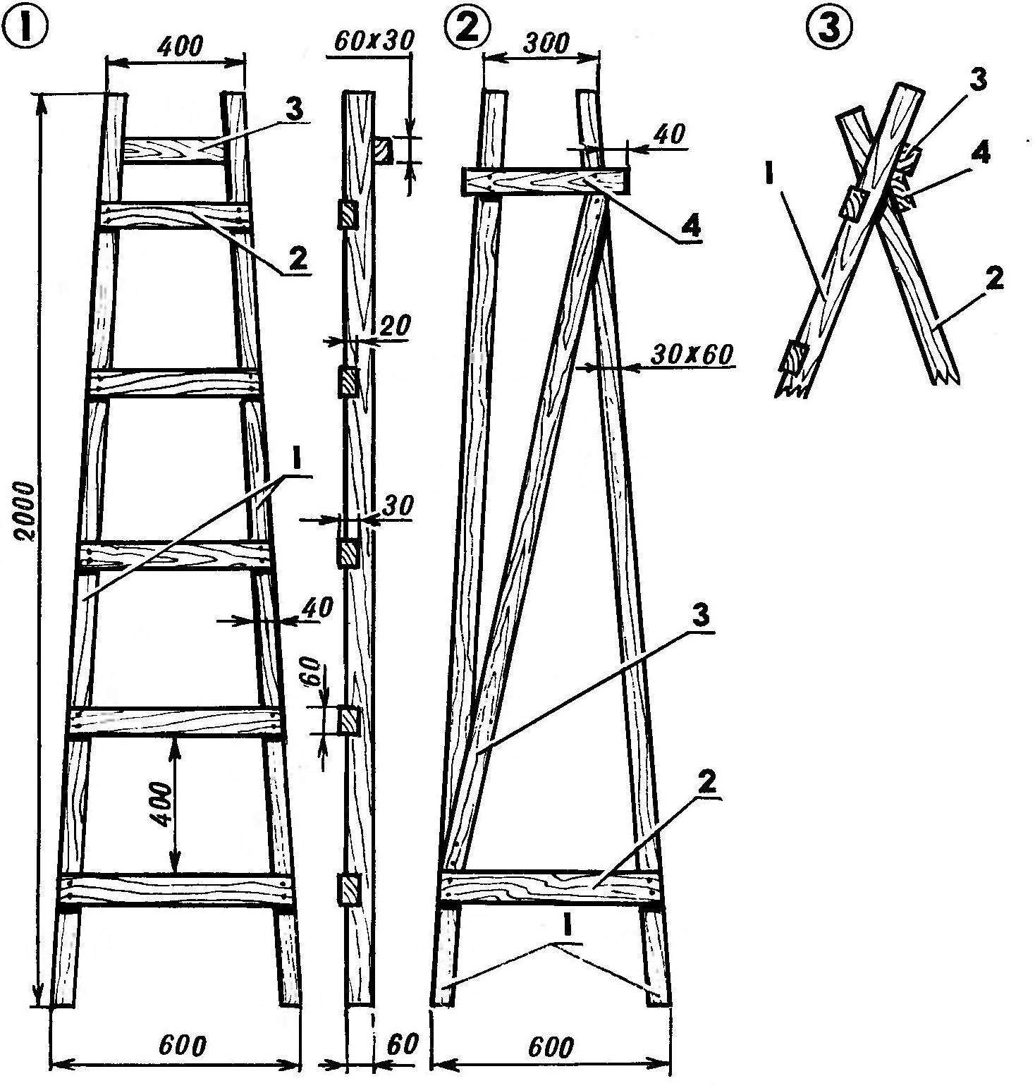 - Auf der Rückseite der Leiter müssen Sie die Diagonalstäbe um 15-20 cm länger als die Struktur befestigen, um dem gesamten Gerät Steifigkeit zu verleihen.