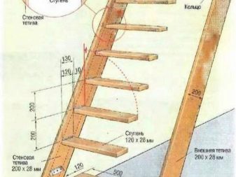 - Der Winkel der Treppe hängt auch von der Konstruktion und dem Raumangebot ab.auf dem es platziert ist. Empfohlen für stationäre Modelle ist der Winkel von 45 Grad. Für Faltoptionen kann er 60 und sogar 75 Grad erreichen. Die Größe dieses Parameters wählend, ist es auch notwendig, von der Sicherheit des Anhebens zum Dachboden in solch einem Winkel anzufangen.