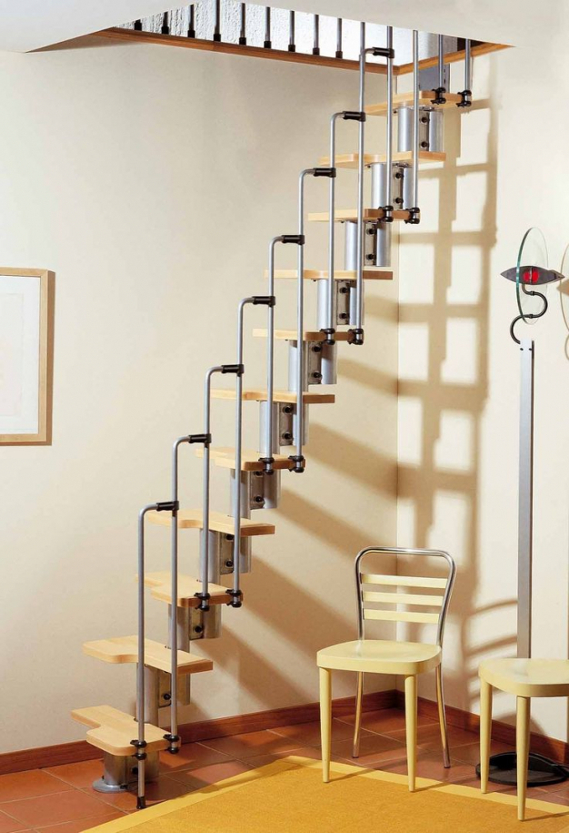 Kombinierte Treppe ist weniger üblich, hat aber ihre Popularität in engen Kreisen. Seine Hauptvorteile schließen die folgenden ein: