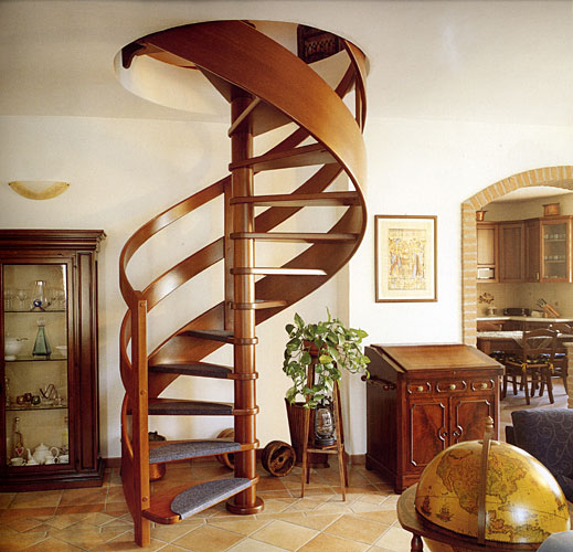 - Stationär. Treppen, die immer an Ort und Stelle sind, verschraubt mit dem Boden, der Decke oder der Wand. Sie werden sich niemals rühren. Meistens in Räumen mit einer großen Fläche installiert. Die Wendeltreppe gilt als die dimensionalste und bequemste zu verwenden. Solche Designs gelten als die sichersten und nachhaltigsten.