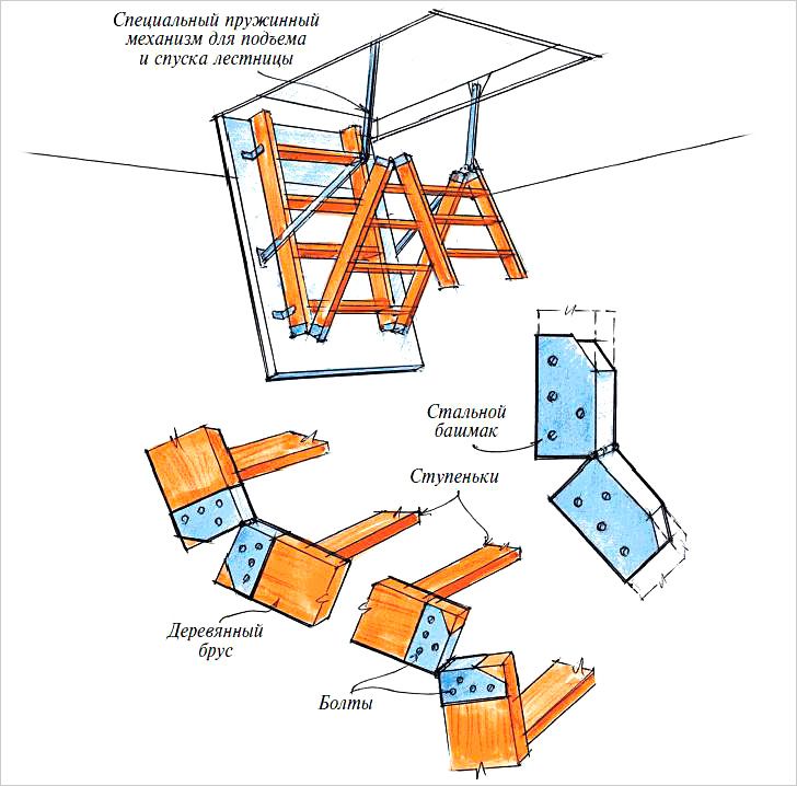 Bei der Auswahl einer Klappstruktur sollten Sie auf den Mechanismus zum Anheben und Absenken der Leiter achten.