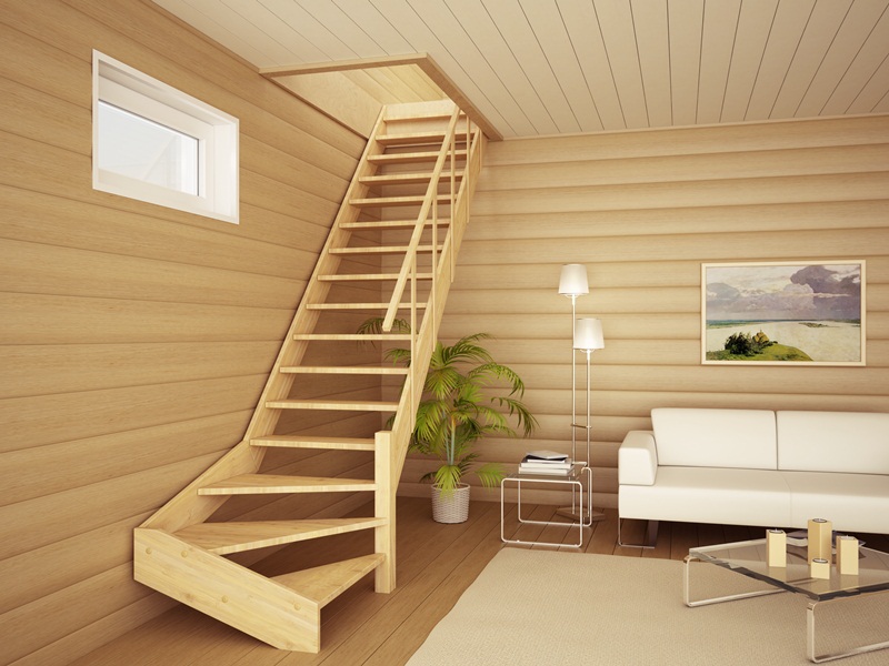 - Sie müssen eine fertige Holztreppe kaufen. Seine Länge sollte 30-40 cm größer sein als die Deckenhöhe im Raum.