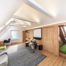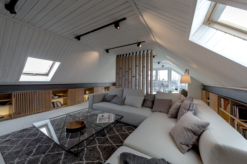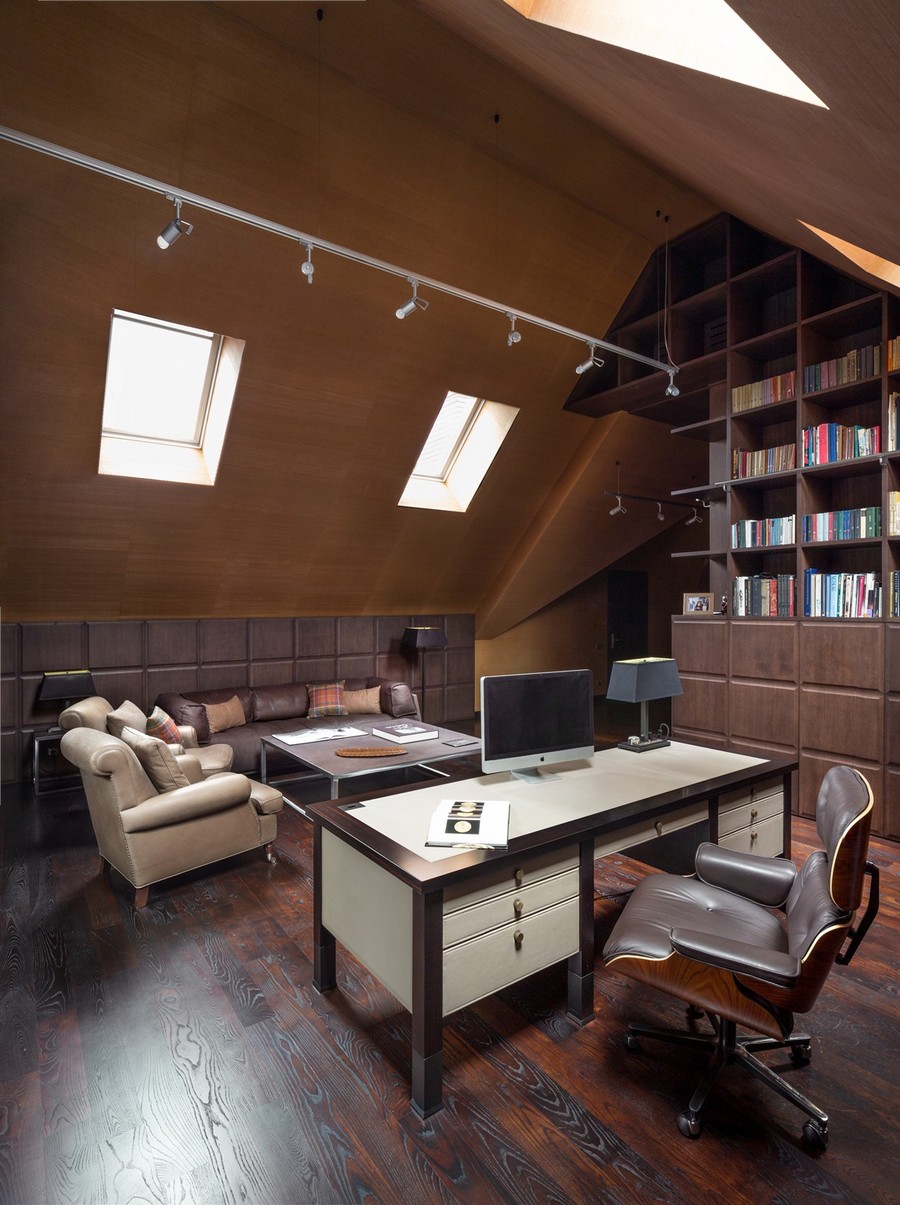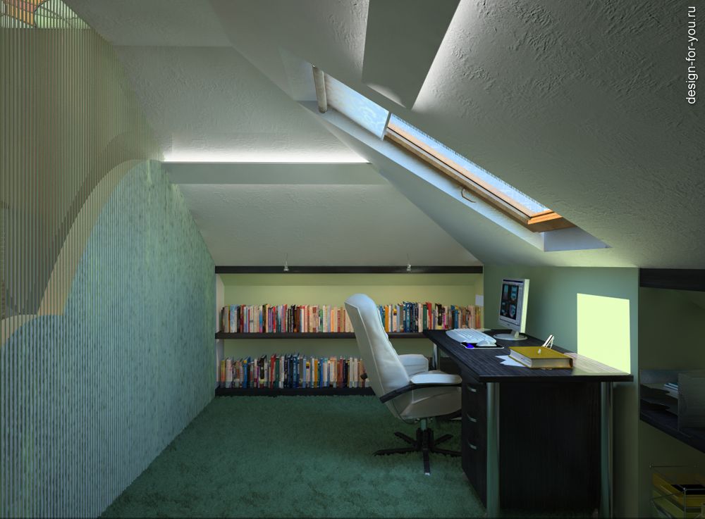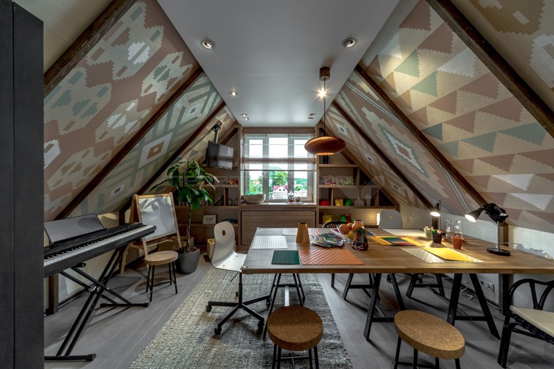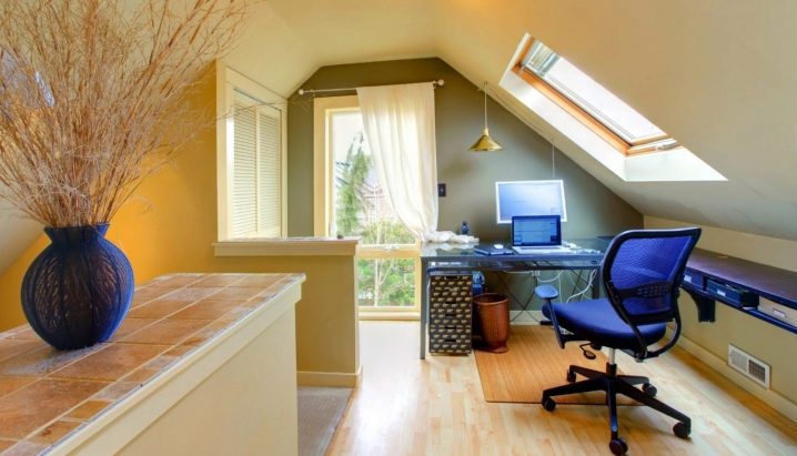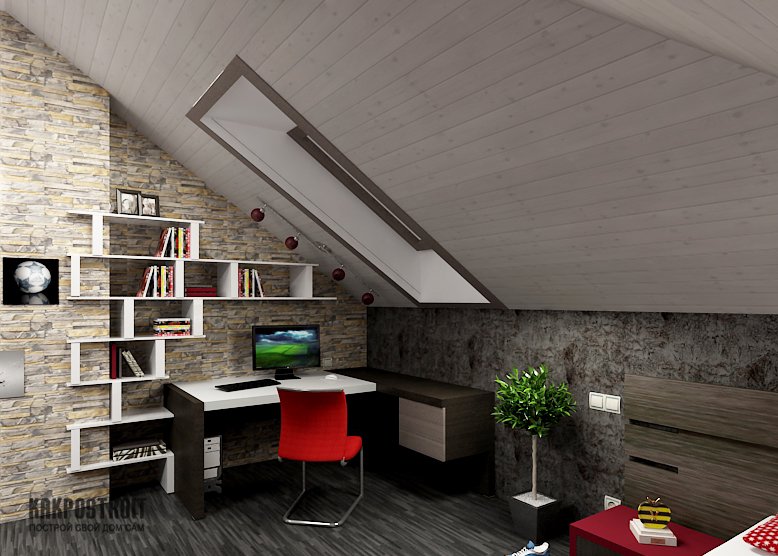 - Wenn Sie einen separaten Raum für die Arbeit zu Hause benötigenSie können es auf dem Dachboden ausstatten. Ein solcher Raum wird Kabinett genannt. Dort können Sie die Ruhe und Arbeitsatmosphäre genießen. Selbst auf dem kleinsten Dachboden können Sie problemlos einen Schreibtisch und einen Stuhl platzieren. Der große Vorteil ist, dass der Dachboden weitgehend vom Rest des Hauses isoliert ist. Selbst wenn Sie eine große Familie haben, können Sie erwarten, dass Sie hier nicht gestört werden.