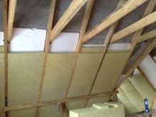 Das Dach kann unabhängig mit Mineralwolle, Polyurethanschaum, Sägemehl oder Filz getrimmt werden. Dies schafft eine Barriere gegen kalte Luft.