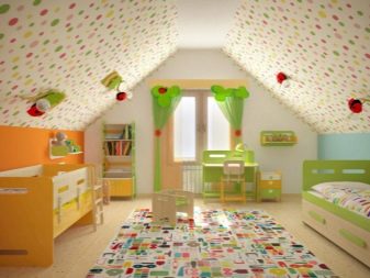 - Bei der Bestimmung des besten Zwecks des Dachbodens viele beschließen, ihn unter die Baumschule zu bringen. In der Tat können Sie dort einen gemütlichen Ort schaffen, indem Sie Betten für Kinder, Spielzeug und sogar einen Platz zum Lernen reservieren. In diesem Fall ist es jedoch wichtig, auf gute Dachbodenbeleuchtung zu achten. Steile Treppen, die direkt zum Zimmer führen, können für kleine Kinder gefährlich sein. Wenn es eine Gelegenheit gibt, ist es daher besser, einen symbolischen Flur und eine separate Tür zum Kinderzimmer zu machen.