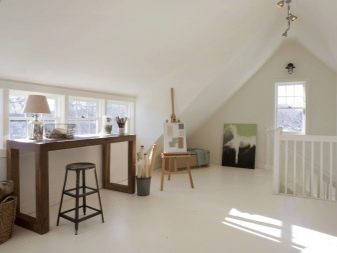 - Kreative machen oft ein Dachbodenstudio für ihre Hobbys. Wenn Sie eine Leidenschaft für Malerei haben, können Sie Staffeleien dort platzieren, ohne Angst vor Flecken mit Farbe an den Wänden, Böden und Möbeln im Rest des Hauses. Wenn Sie mit Musik beschäftigt sind, können Sie eine gute Schallisolierung auf dem Dachboden machen, nachdem Sie die Wände mit Filz gepolstert haben. So können Sie Ihre Lieblingssache zu jeder Zeit des Tages tun, ohne andere Familienmitglieder zu stören.