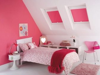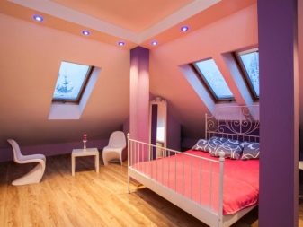 Wenn Sie ein geräumiges Dachgeschoss haben, können Sie mehr Fantasie bei der Auswahl einer Farbpalette zeigen. In diesem Fall passen fast jede Farbe, harmonisch miteinander kombiniert. In diesem Fall können Sie zwei oder drei Farben kombinieren.