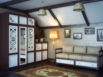 Um einen komfortablen Dachboden in einem privaten Haus zu schaffen, ist es wichtig, über die Möbel nachzudenken.Wenn Sie einen kleinen Bereich optisch erweitern möchten, helfen Ihnen horizontale Elemente dabei: Wenn Sie niedrige Decken haben, können Sie mehrere längliche schmale Schränke zum Arrangieren auswählen.
