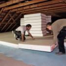 Es ist auch möglich, die Isolierung des Dachbodens mit Polystyrolschaum durchzuführen. Es wird normalerweise in alten Häusern verwendet, wo die Böden aus Holz sind. Es hält perfekt Wärme und belastet die tragenden Strukturen nicht. Darüber hinaus ist Polystyrol leicht zu schneiden und zu montieren. Es ist auch erwähnenswert, dass es überhaupt kein Wasser aufnimmt und ein umweltfreundliches Material ist.