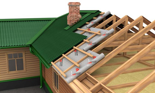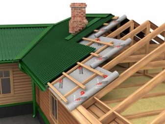 Von der Traufe aus betrachtet, wird das Material horizontal auf die Seite gelegt, wodurch Sie eine Barriere gegen das Eindringen des Windes bilden können. In der Gegenwart von Blasen des Raumes auf all diese Gestaltung auferlegen zusätzliche Isolierung, die die Fähigkeit hat, Dampf zu passieren. In der Regel ist es am besten, in diesem Fall isospan zu verwenden. Die Umsetzung eines solchen Systems zur Schaffung einer Art "Kuchen" wird die Dämmeigenschaften von Nichtwohndachböden deutlich verbessern.