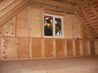 Um den Platz unter dem Dach und dem Boden zu isolieren, verwenden Sie eine Plattendicke von 12-14 cm. Sie sind in 2 Schichten verlegt. Die erste ist zwischen den Lags, und die zweite - auf ihnen fixiert. Danach wird die gesamte Struktur mit Lamellen verstärkt, die dann verdampft werden. Die letzte Berührung wird Polstersperrholz sein oder mit Hilfe von Schindeln plattiert werden.