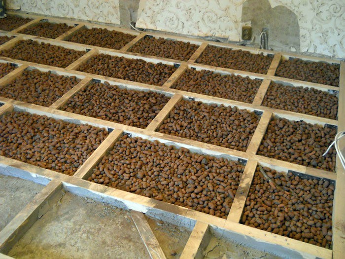 Blähton - noch ein Material, auf das ich meine Aufmerksamkeit gerne einstellen würde. Es ist absolut umweltfreundlich und feuerfest. Es ist wahr, sein Nachteil ist eine hohe Wärmeleitfähigkeit. Damit es seine Funktionen qualitativ erfüllen kann, ist es notwendig, etwa 20 cm davon in einer Schicht zu gießen.