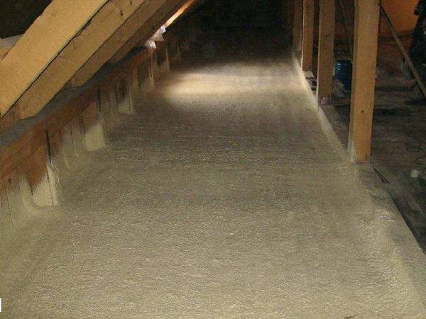 Eine weitere gute Option für die Dachbodenheizung ist die Verwendung von Öko-Wolle. Diese Art der Isolierung wird mit einer Gebläseanlage gestapelt. Der Vorteil dieser Methode ist die fehlende Notwendigkeit, die Basis vorzubereiten. Eine solche Schicht wird jedoch ohne Lücken gleichförmig sein.