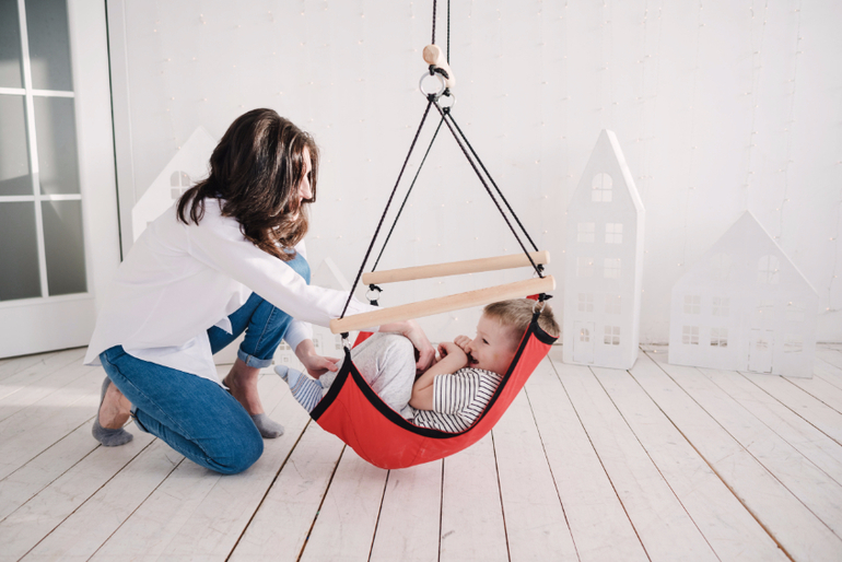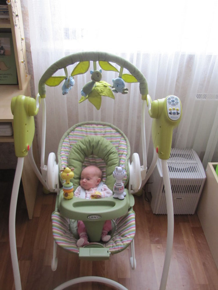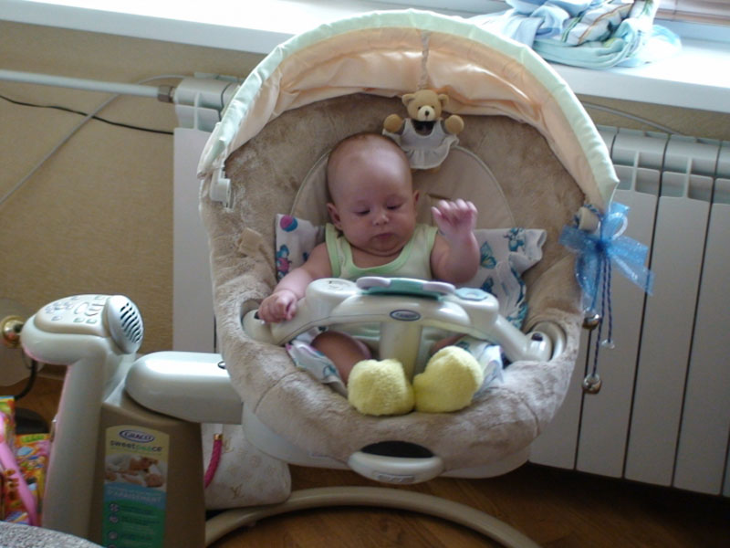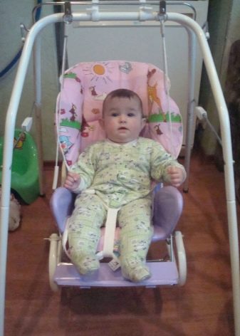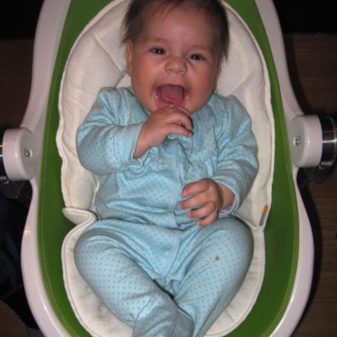 Die Vorteile des Swing liegen auch darin, dass sie sich positiv auf die geistige und körperliche Verfassung des Neugeborenen auswirken. Das Kind beruhigt sich schnell, hört auf zu weinen, entwickelt den Gleichgewichtsapparat, entwickelt Muskeln.