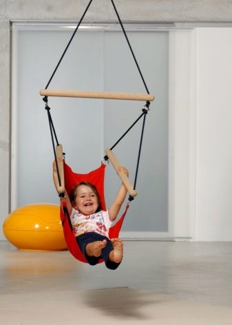 Der Sitz einer solchen Schaukel kann entweder aus Holz gefertigt und mit einem Tuch ummantelt oder sofort komplett komplett weich gemacht werden. Eltern sollten sich immer an die Sicherheit des Babys erinnern und deshalb das Schwingen so angenehm und zuverlässig wie möglich machen.
