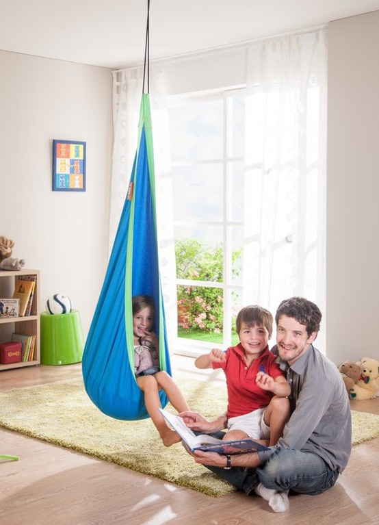 Suspended Swing nimmt nicht viel Platz und kann an jedem geeigneten Ort aufgehängt werden. Sie sind ziemlich billig und fast alle Eltern können sie sich leisten.Von den Nachteilen gibt es nur einen - es ist ein mechanischer Schwung einer Schaukel. Das heißt, dieses Gerät wird nicht in der Lage sein, Mutter oder Vater Zeit für dringende Angelegenheiten oder Hausaufgaben zu geben.