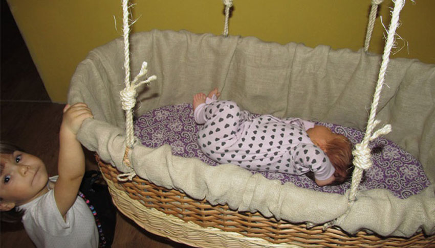 Schon in vergangenen Jahrhunderten schufen Menschen Wiegen, die mit einem Seil und einem Eisenhaken an der Decke oder anderen Geräten befestigt wurden.