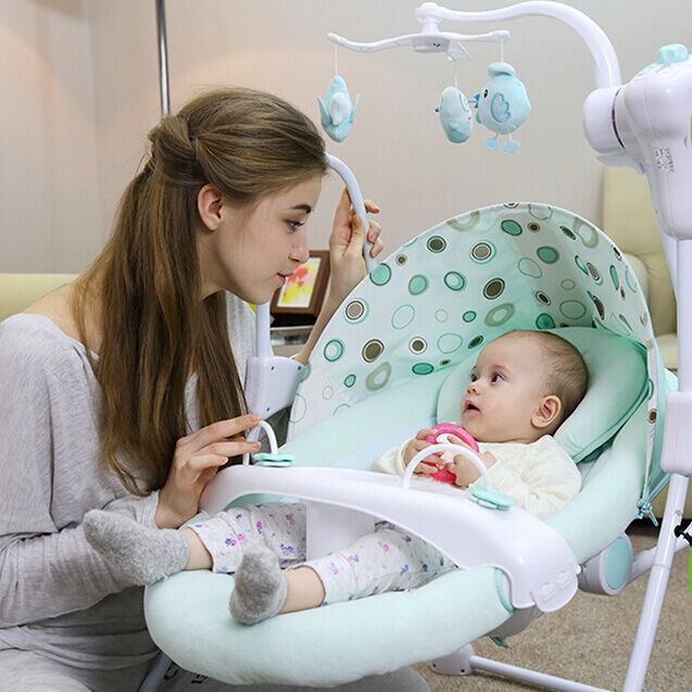 Ein gemütliches kleines Bett nur für Neugeborene. Diese Schaukeln werden zum Schlafen benutzt und ersetzen die Hände der Eltern. Stromversorgung über Batterien oder Netzwerk. Sehr oft enthält das Set hängenden Spielsachen, eine Musikeinheit und ein Bedienfeld. Die Wiege kann die Funktion der Vibration, mehrere Arten von Geschwindigkeit der Reisekrankheit, verschiedene Schlaflieder von Melodien, leichte Musik haben.
