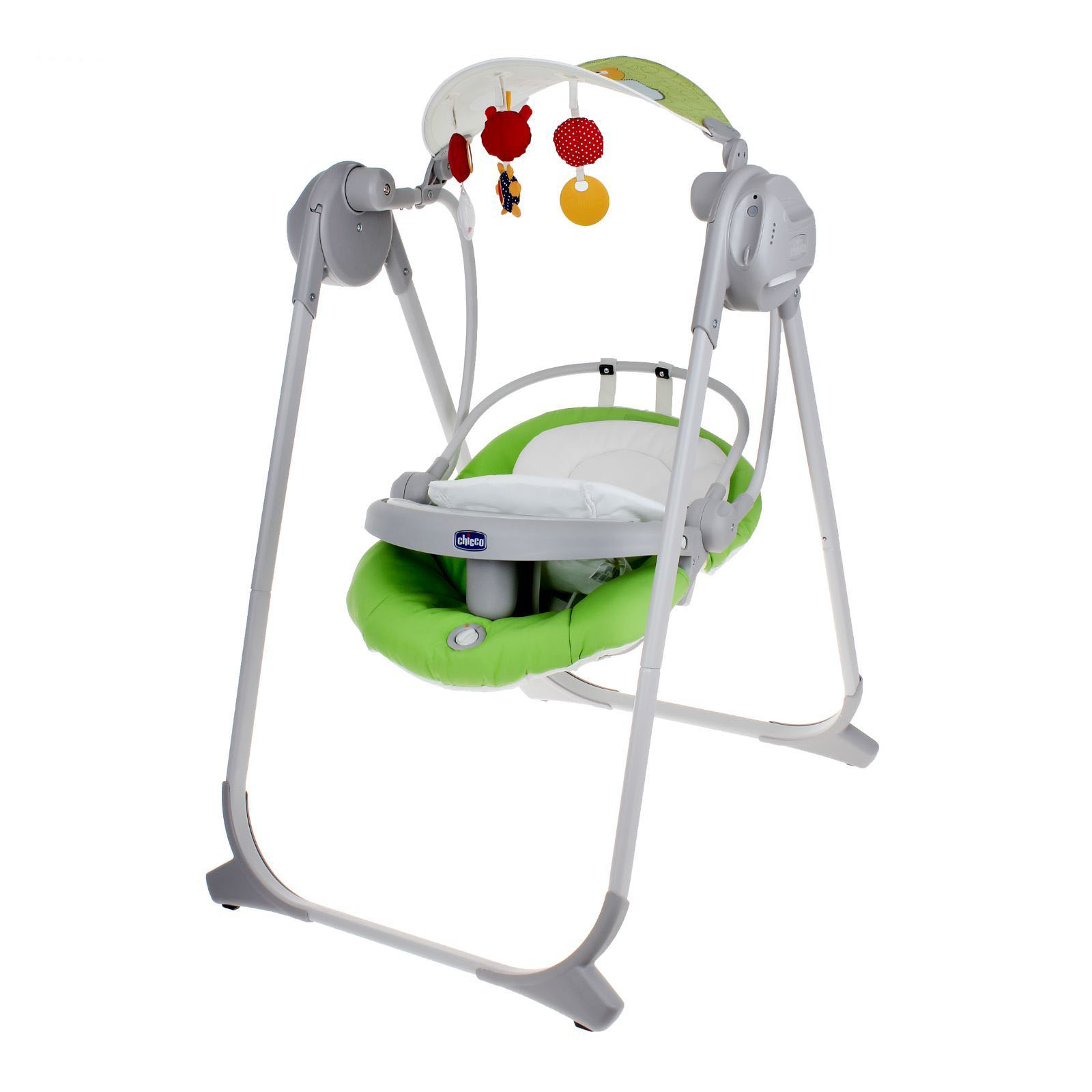 - Chicco. Die von dieser Marke veröffentlichte Neuheit verdient Aufmerksamkeit. Swings haben ausgezeichnete Eigenschaften und eine große Anzahl zusätzlicher Funktionen. Zum Beispiel, ein Bedienfeld, ein Visier, das leicht angepasst werden kann, ein Fach.