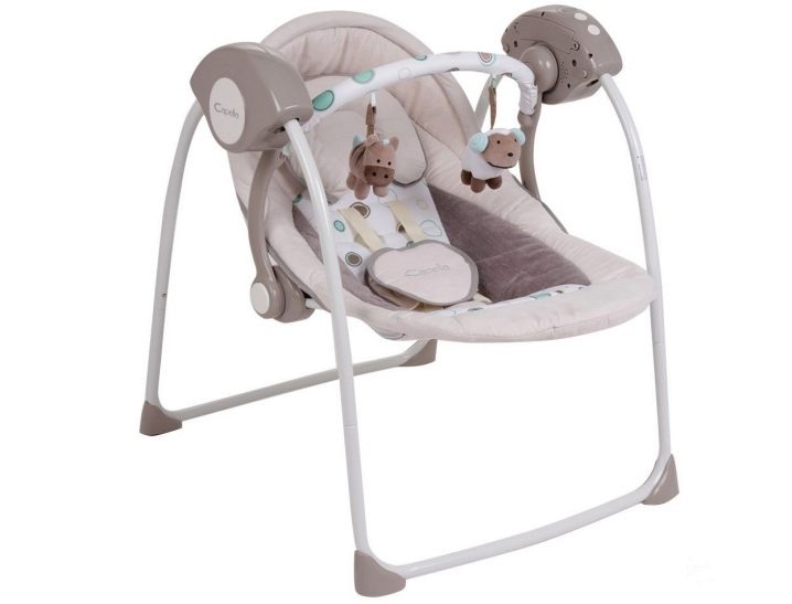 Diese Schaukeln haben ein originelles Aussehen. Ein sehr bequemer Stuhl mit zuverlässigen und einfachen Sicherheitsgurten, zwei Spielzeuge, die Ihr Kind auf jeden Fall mögen wird, sechs Geschwindigkeiten von Reisekrankheit und zehn angenehme Melodien.