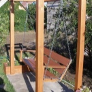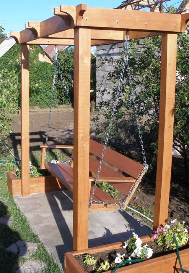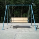 - Suspended Schwingen. Die häufigste Art der Schaukel, die viele Modifikationen hat. Eine schaukelartige Schaukel besteht aus einem Sitz (Kunststoff- oder Holzbrett, Stuhl, Reifen, Tasche usw.) und einer Aufhängung (Seil, Kette).