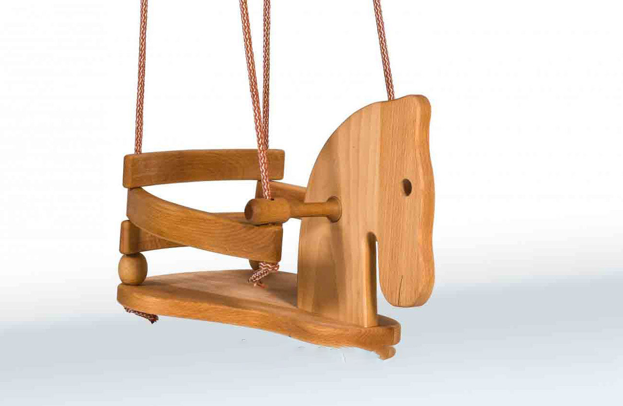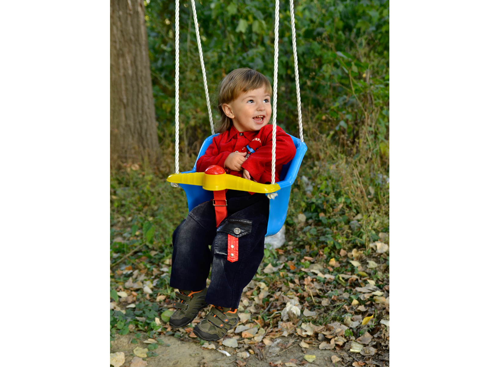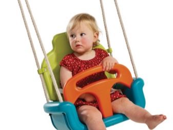 Der Vorteil des Aufhängens an den Seilen sind geringe Kosten, einfache Lagerung und Transport. Sie können überall platziert werden, auch in der Nähe ihrer Eltern. Alle Schaukeln für Kinder in diesem Alter sind sicher mit einem Rücken und einem Limiter vorne versehen.