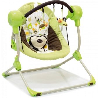 - 3-12 Monate. Für die jüngsten Kinder ab 6 Monaten entwickelte sich ein so wunderbares Gerät, wie der elektrische Schlag. Dies ist eine Home-Version der Schaukel, aber sie sind ziemlich leicht in Straßen verwandelt, es ist genug, um sie mit zur Datscha zu nehmen. Swings haben einen zuverlässigen Rahmen und einen Sitz mit Riemen, der von einem Motor und einem Steuerpult angetrieben wird.