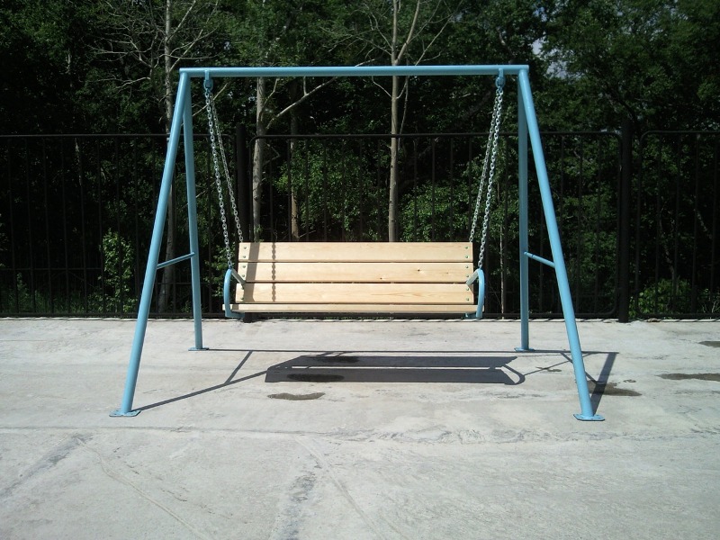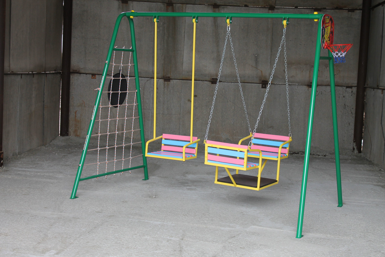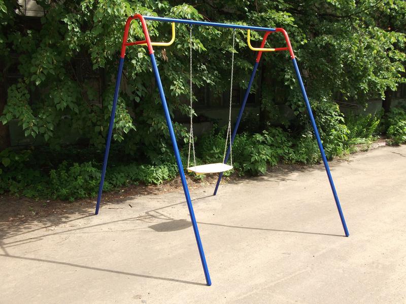 - Metallschaukel. Stellen Sie ein Design, einen Rahmen oder einen Rahmen dar, der aus Metall besteht. Dies ist die dauerhafteste Option, die für größere "Passierbarkeit" kleiner Benutzer konzipiert wurde. Sie werden normalerweise auf Spielplätzen installiert. Solch ein Schwung ist schwierig selbst zu machen, aber sie sind es wert. Der große Vorteil ist, dass sie dem Gewicht von zwei Erwachsenen mit voller Kraft standhalten können.