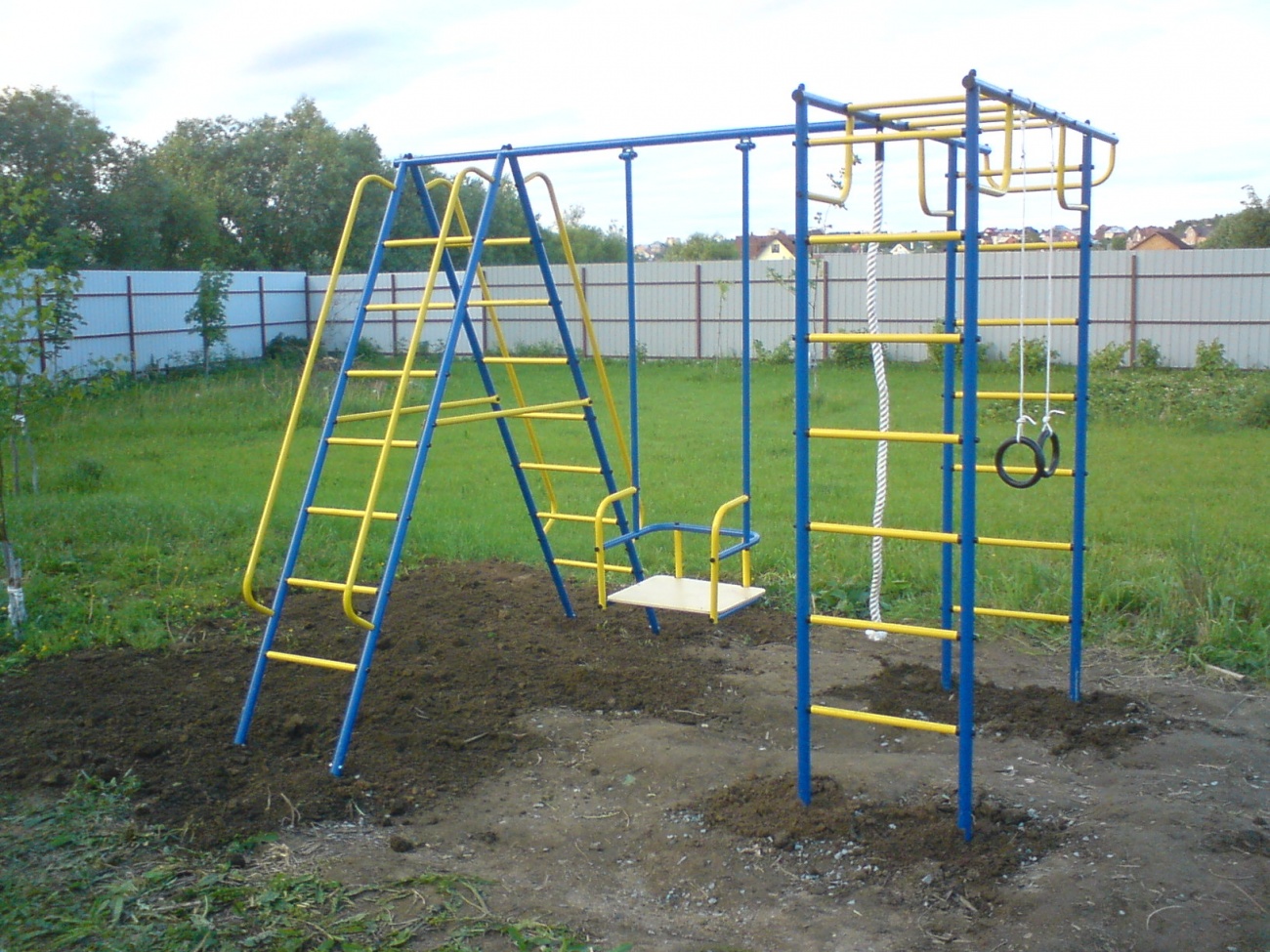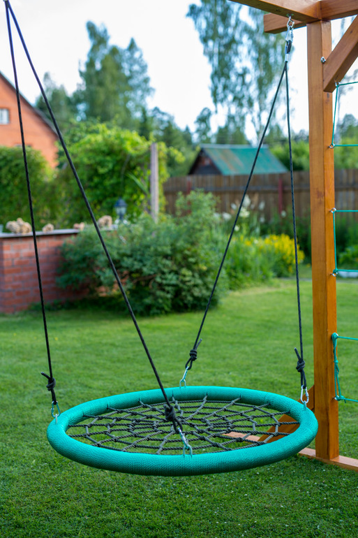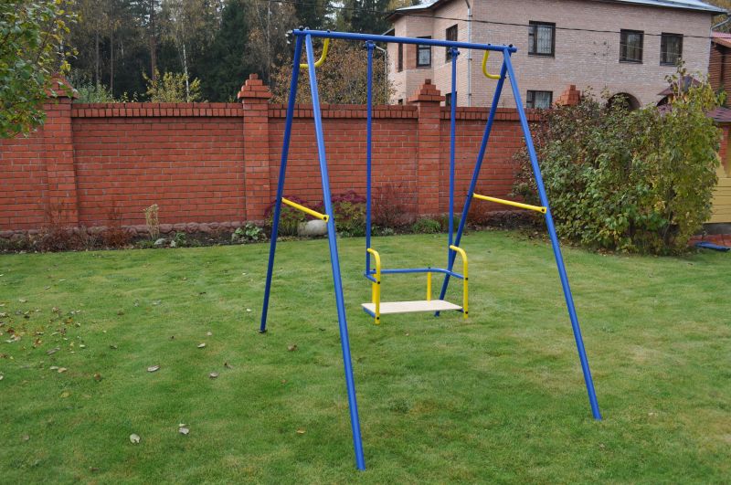 - Der Platz für den Schwung sollte basierend auf der Höhe des Befestigungspunkts ausgewählt werden Wenn die Stäbe in einer Höhe von 3 Metern montiert sind, sollte um die Schaukel herum mindestens 6 Meter Freiraum sein. Denken Sie daran, dass Kinder am besten von einer Schaukel springen, also sollten sich in der Nähe keine Bäume, Büsche und Zäune befinden.